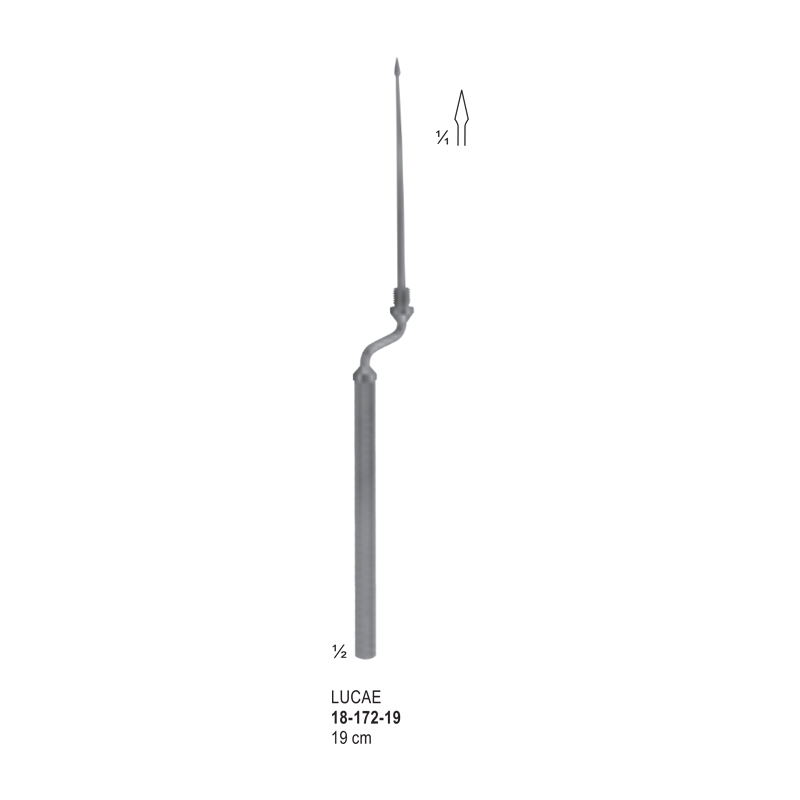 The Lucae Tympanum Needle is a surgical instrument used by otolaryngologists (ear, nose, and throat specialists) for procedures on the tympanic membrane (eardrum) and middle ear. It’s designed for precision and controlled tissue manipulation, particularly in procedures like myringotomy (eardrum incision).