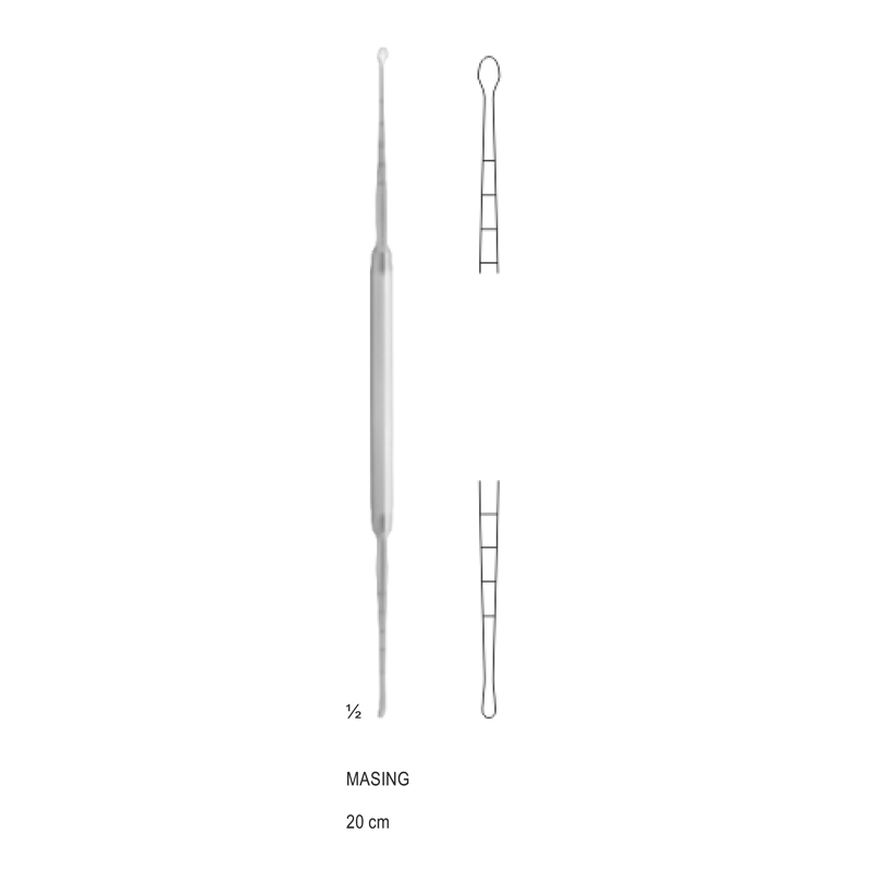 A Masing periosteal elevator is a surgical instrument used primarily in nasal and plastic surgery, particularly for elevating and separating the periosteum (a membrane covering bone) from underlying bone structures. It’s designed to aid in procedures like rhinoplasty, nasal fracture repair, and correction of septal deviations. The instrument is characterized by its double-ended design, with a central handle and angled blades for precise manipulation and access during dissections.
