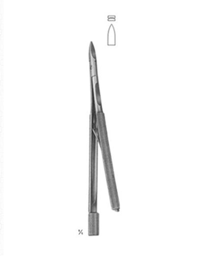 The Troutman-Chris instrument is a surgical instrument used for safely handling and breaking surgical blades, primarily in ophthalmic and microsurgical procedures. It is designed to provide a secure grip and controlled blade manipulation, reducing the risk of accidental cuts and injuries to both the user and the patient.